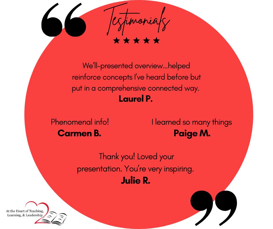 "Las sesiones de 'At The Heart Teaching & Learning' son siempre interesantes y educativas. Siempre aprendo nueva información y estrategias para compartir con las familias con las que trabajo".